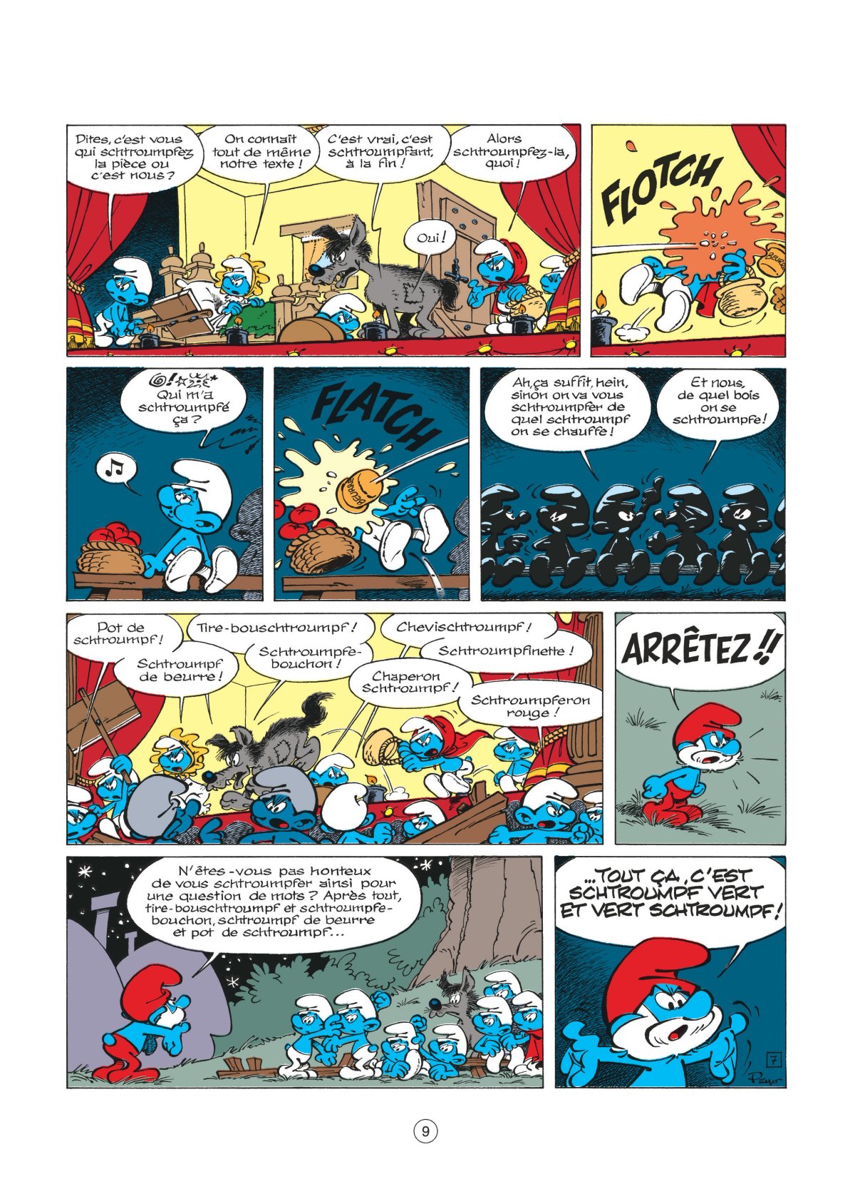 Le Schtroumpf bricoleur se rend chez un Schtroumpf du nord pour récupérer son schtroumpf-bouchon que celui-ci lui a emprunté une semaine plus tôt. Mais ce dernier veut à tout prix qu’il dise « tire-bouschtroumpf », ce qui provoque une dispute que le Grand Schtroumpf, préoccupé par ses recherches, refuse d’arbitrer. Chacun prend alors à partie les autres habitants du village, qui campent sur leurs positions. Le soir, alors que tout le village assiste à une représentation théâtrale du Petit Chaperon rouge, les acteurs, tous des Schtroumpfs du sud, se font sans cesse contredire par les spectateurs, parmi lesquels des Schtroumpfs du nord. Le spectacle dégénère alors en bagarre entre les deux camps. Le Grand Schtroumpf leur ordonne alors d’arrêter et leur fait comprendre la stupidité de se battre pour une question de mots. Mais à peine est-il parti que la bagarre recommence.