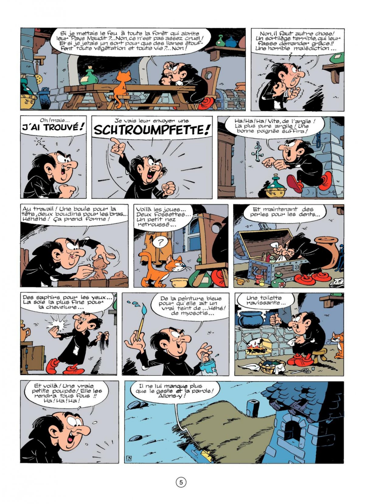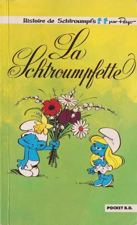 La Schtroumpfette est le premier Schtroumpf féminin. Elle a été créée dans la bande dessinée par Gargamel, sorcier à l’imagination intarissable, pour semer la zizanie dans le village des Schtroumpfs. Elle concentre, selon lui, tous les atouts du sexe féminin, critères de beauté qui ne sont pas partagés par les Schtroumpfs qui finissent par dénigrer son physique. Notons qu’auparavant, les Schtroumpfs n’avaient jamais vu le sexe opposé, comme en témoigne leur réaction de surprise devant la nouvelle arrivante. Le personnage de Schtroumpfette, bien avant d’être un aspect physique, est un caractère : les pauvres Schtroumpfs, d’un naturel hospitaliers, vont se soumettre aux nombreux caprices de cette dernière, jusqu’à finalement l’exclure du groupe. Lors de sa première apparition, la Schtroumpfette porte une robe blanche et a les cheveux courts et noirs. Après l’intervention du Grand Schtroumpf, elle porte une robe blanche plus belle et les talons hauts blancs, et a les cheveux longs et blonds, lui conférant sa grâce et sa beauté définitives. C’est auprès du Grand Schtroumpf que la Schtroumpfette va acquérir son nouveau physique. Sa métamorphose va lui conférer un pouvoir particulier auprès des Schtroumpfs, tombés sous son charme. Plus personne n’ose la contredire, ce qui va se révéler dangereux pour la communauté en attendant.