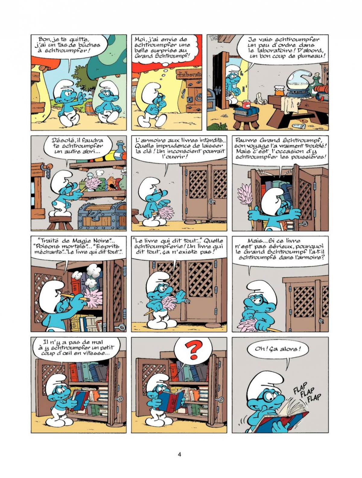 Les Schtroumpfs ne sont décidément pas faits pour être laissés sans surveillance ! Même le Schtroumpf à lunettes est incapable de résister à la tentation. Alors qu’il nettoie le laboratoire du Grand Schtroumpf en son absence, le « premier de la classe » tombe sur un mystérieux livre qui contient toutes les réponses. Le Schtroumpf à lunettes aurait-il enfin trouvé le moyen d’être populaire. Ou, mieux, de faire régner sa loi ? Avec ce nouvel album à mi-chemin entre « Le Schtroumpfissime » et « L’ ?uf et les Schtroumpfs », les Schtroumpfs entament l’année de leur 50e anniversaire de fort belle manière ! 2008 sera l’Année des Schtroumpfs avec l’anniversaire des 50 ans de leur découverte. Une aventure des Schtroumpfs dans la pure lignée des grands classiques de la série créée par Peyo.