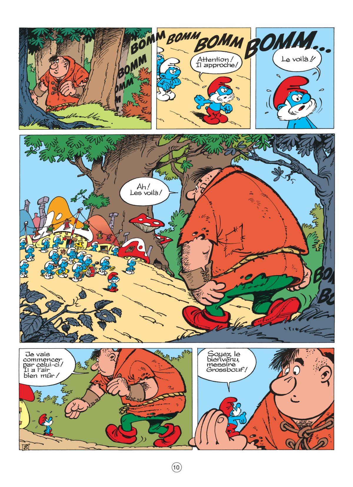 Grossbouf, un géant affamé, rend visite à Gargamel. Le sorcier lui affirme que le seul plat capable de le rassasier est une soupe aux Schtroumpfs. Cependant trois Schtroumpfs ont surpris leur conversation et décident de tendre un piège à Gargamel.