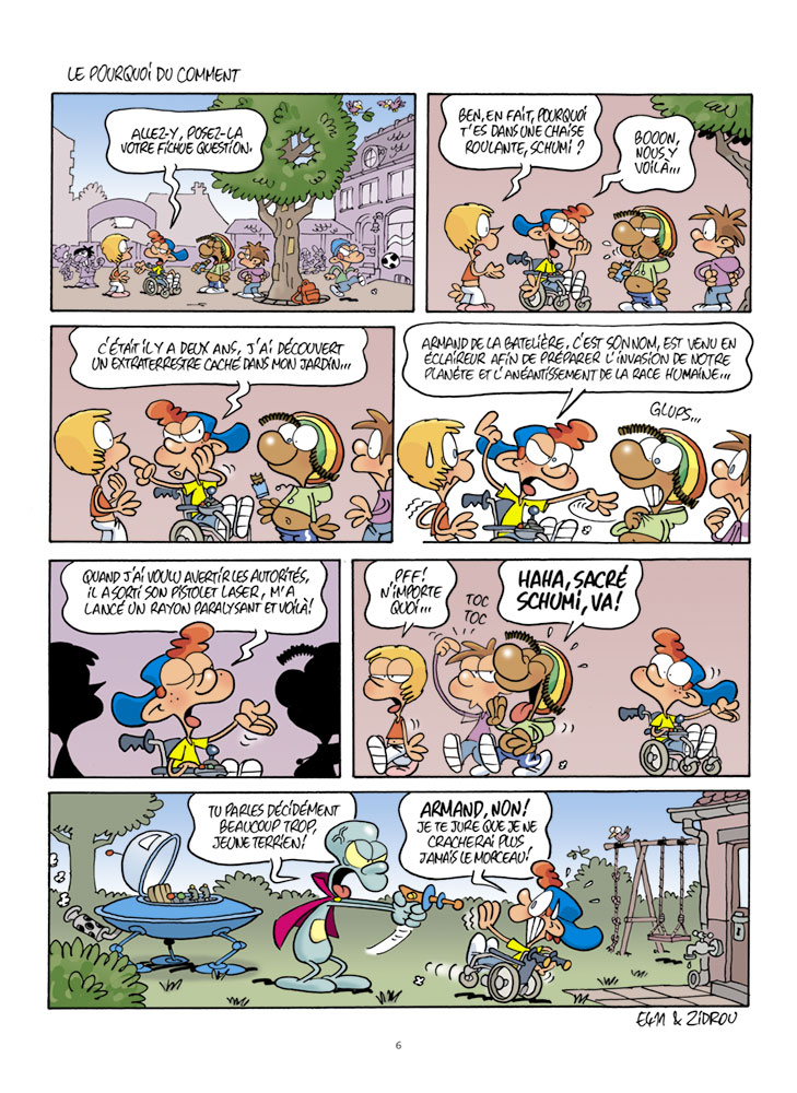 Schumi est un petit garçon presque comme tous les autres, avec son meilleur pote Hami, sa soeur pupuce, son instit’ et sa prof de gym dont il est secrètement amoureux... Mais Schumi est en fauteuil roulant ! Tout ça à cause d’un extra-terrestre au nom imprononçable... Armand de la Batelière...Franchement, a-t-on idée de s’appeler comme ça ?