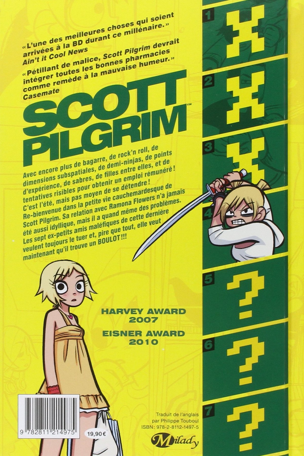 C’est l’été, mais pas moyen de se détendre ! Re-bienvenue dans la petite existence cauchemardesque de Scott Pilgrim. Sa relation avec Ramona Flowers n’a jamais été aussi idyllique, mais il a quand même des problèmes. Les sept ex-petits amis maléfiques de cette dernière veulent toujours le tuer et, pire que tout, elle veut maintenant qu’il trouve un BOULOT !!! Scott Pilgrim 4 : avec encore plus de coups de pied, de coups de poing, de rock’n roll, de dimensions subspatiales, de demi-ninjas, de points d’expérience, d’épées de samouraï, de filles entre elles, et de tentatives risibles pour obtenir un emploi rémunéré !
