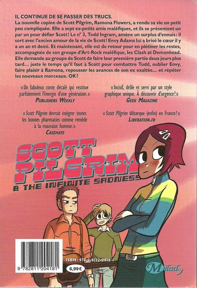 La nouvelle copine de Scott Pilgrim, Ramona Flowers, a rendu sa vie un petit peu compliquée. Elle a sept ex petits amis maléfiques, et ils se présentent un par un pour défier Scott ! Le n°3, Todd Ingram, amène un surplus d’ennuis : il sort avec l’ancien amour de Scott. Envy Adams lui a brisé le coeur il y a un an et demi. Et maintenant, elle est de retour pour en piétiner les restes, accompagnée de son groupe d’Art Rock maléfique, les Clash at Demonhead. Elle demande au groupe de Scott de faire leur première partie deux jours plus tard... juste le temps qu’il faut à Scott pour combattre Todd, oublier Envy, faire plaisir à Ramona, repousser les avances de son ex exaltée... et répéter les nouveaux morceaux. OK ?