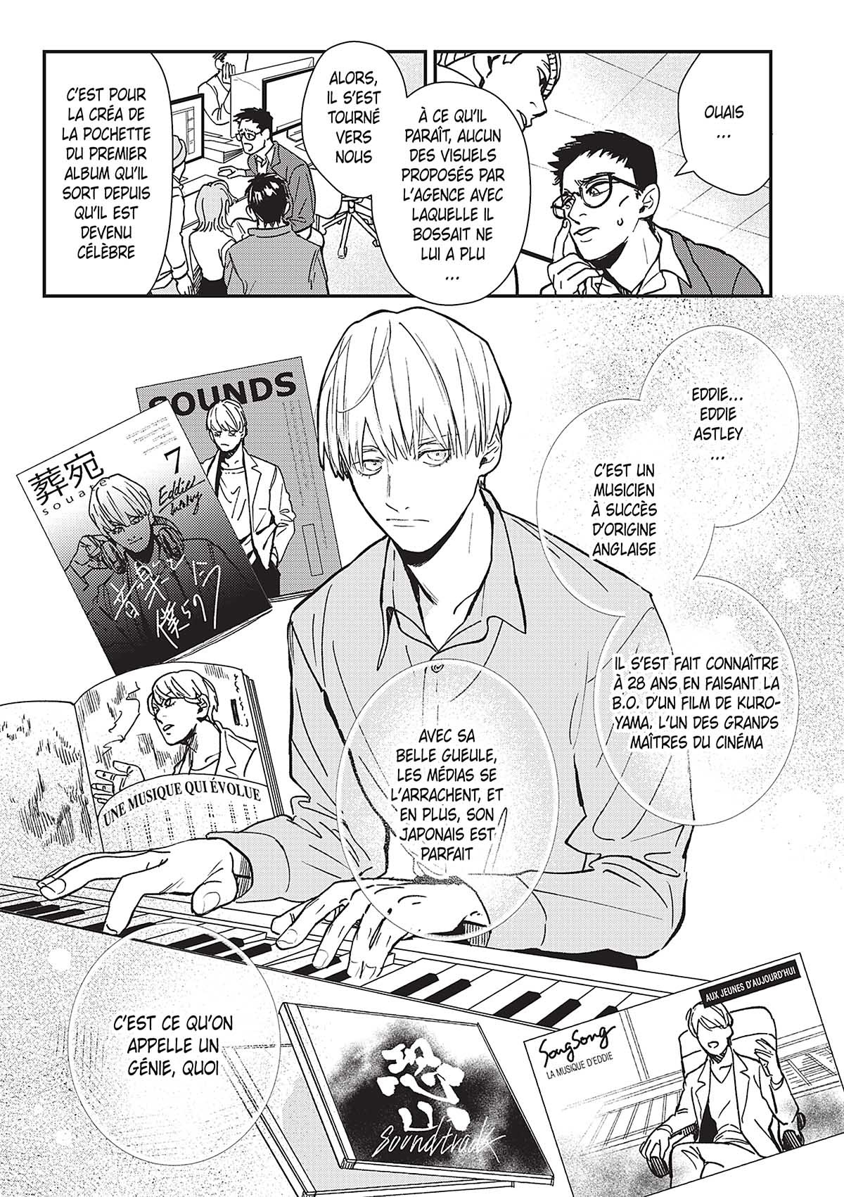 Kurosaki aime la musique depuis son enfance. Devenu adulte, il travaille en tant que graphiste dans une agence de design. Sa carrière ne semble pas décoller et il a bien du mal à créer des visuels qui plaisent aux clients. Mais quand, un jour, son entreprise se voit confier la mission de réaliser la pochette d’album d’un chanteur populaire, Kurosaki croit y voir une opportunité d’allier passion et travail. Problème : le client, Eddie Astley, est un artiste particulièrement difficile à satisfaire... Entre concerts, frustrations et secrets du passé, ces deux-là arriveront-ils à s’entendre