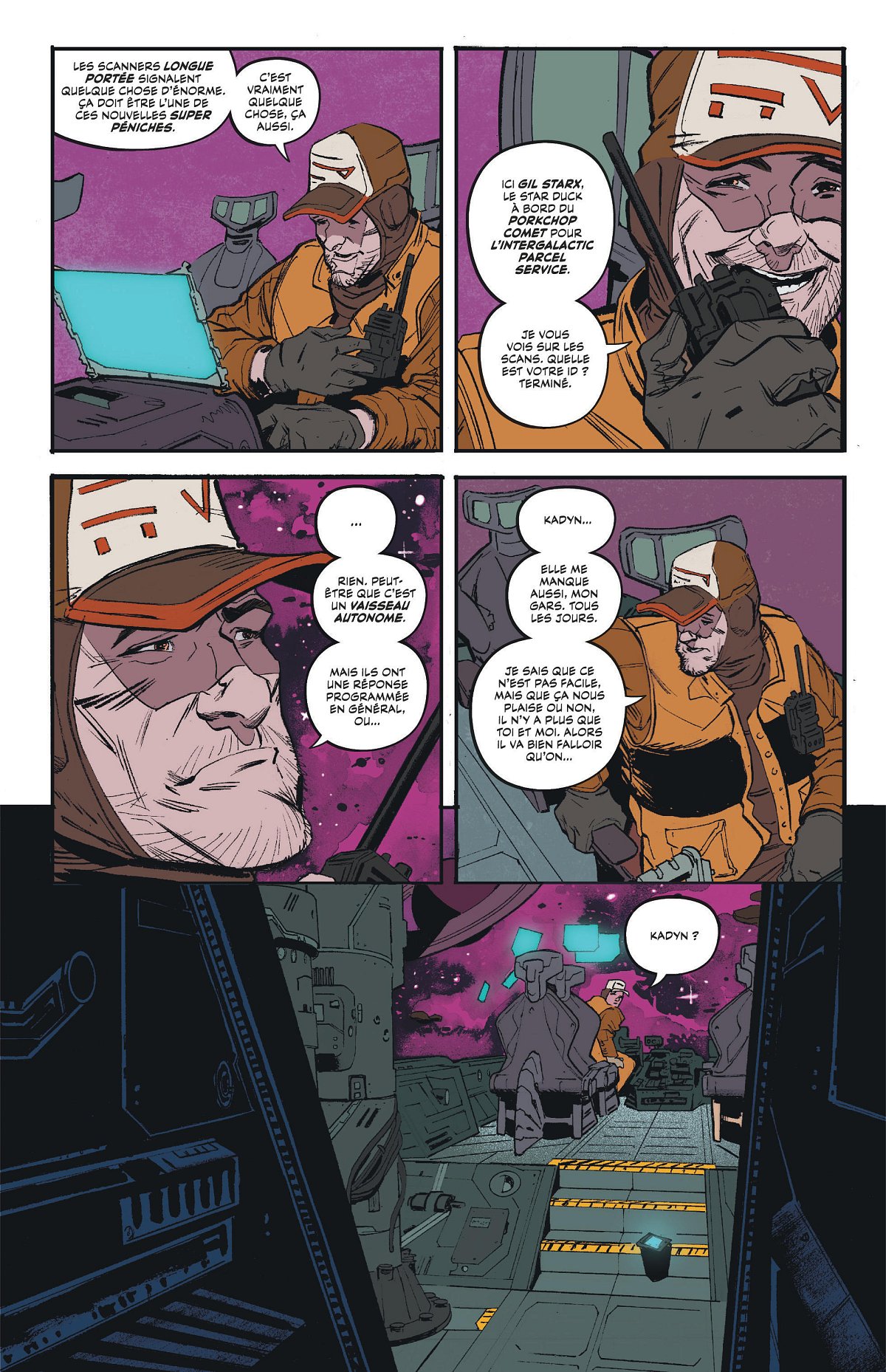 Les yeux perdus dans l’immensité galactique, le jeune Kadyn se morfond devant le hublot du vaisseau convoyeur piloté par son père Gil. Et quoi de mieux pour tromper l’ennui que d’inspecter, sans y être autorisé, la précieuse cargaison provenant d’un musée alien... ? Séparés lors de l’explosion du vaisseau, Gil et Kadyn dériveront dans l’espace, l’un, désespéré, à la recherche de son fils, l’autre, émerveillé par les rencontres exotiques qui rythmeront son odyssée.