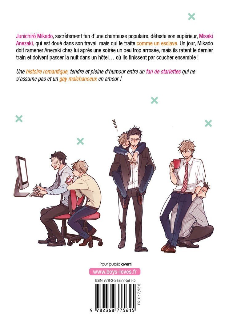 Junichirô Mikado, secrètement fan d’une chanteuse populaire, déteste son supérieur, Misaki Anezaki, qui est doué dans son travail mais qui le traite comme un esclave. Un jour, Mikado doit ramener Anezaki chez lui après une soirée un peu trop arrosée, mais ils ratent le dernier train et doivent passer la nuit dans un hôtel... où ils finissent par coucher ensemble ! Une histoire romantique, tendre et pleine d’humour entre un fan de starlettes qui ne s’assume pas et un gay malchanceux en amour !