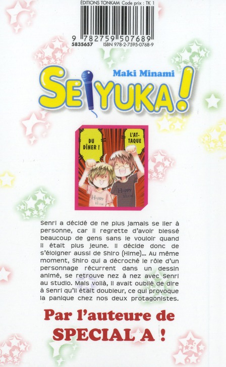 Seiyuka 9 est le volume 9 de la série Seiyuka par Maki Minami, paru en 2012. Selon nos informations, il n'en existe qu'une seule édition, publiée par Tonkam.