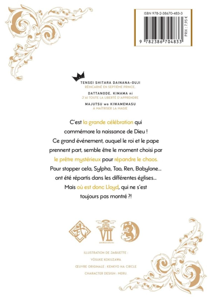 Septième Prince (Le) 8 est le volume 8 de la série Septième Prince (Le) par Kenkyo Na Circle et Yôsuke Kokuzawa, paru en 2025. Selon nos informations, il n'en existe qu'une seule édition, publiée par noeve GRAFX.