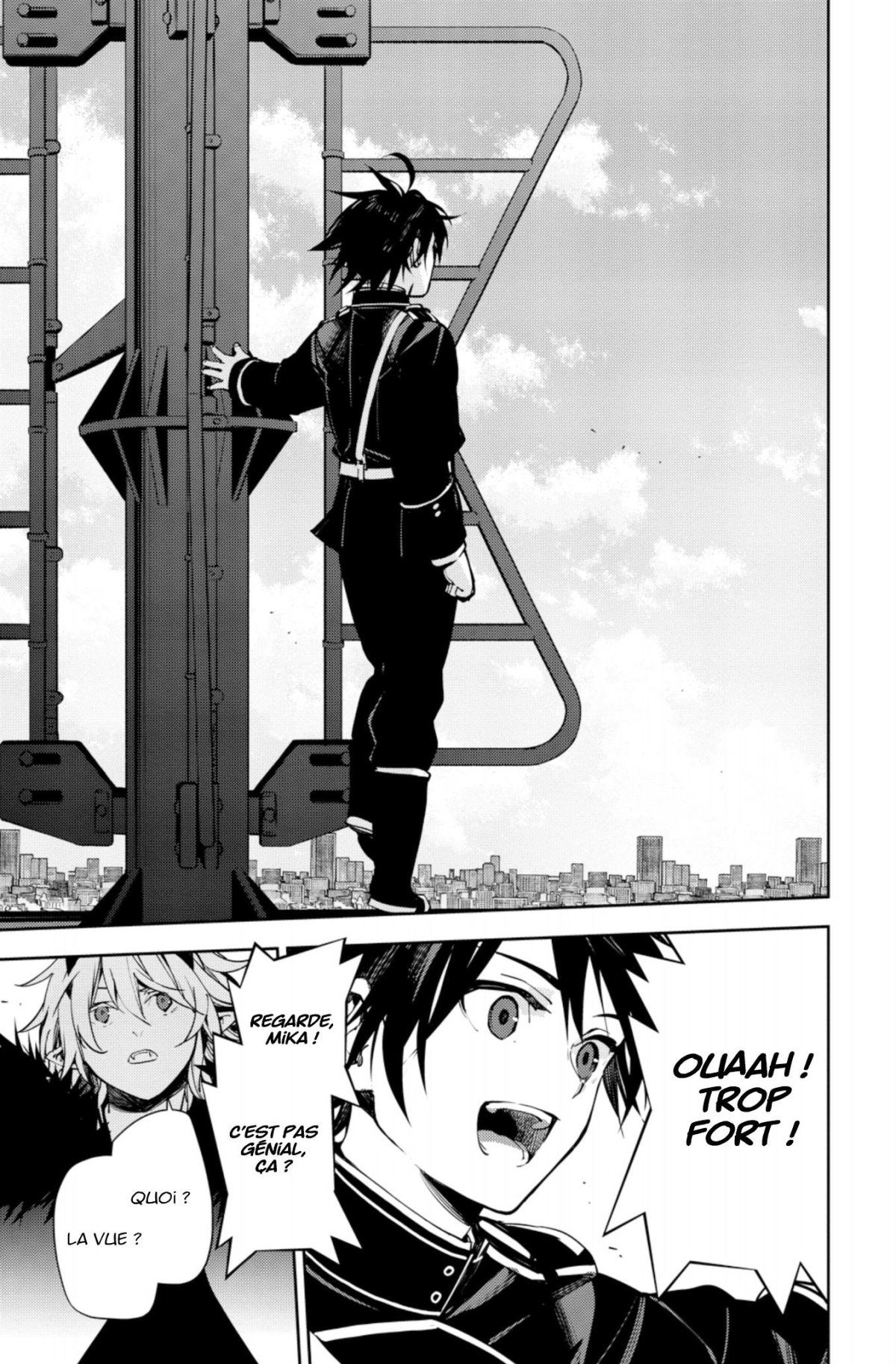 Alors que Glenn et Shikama Dôji ont chacun choisi une voie différente, Yûichirô et Mikael quittent l’unité de Shinoa et entament un nouveau périple afin de sauver "tout le monde" ! Ils vont d’abord commencer par fouiller dans les souvenirs du passé, mais cela nécessite beaucoup d’énergie...