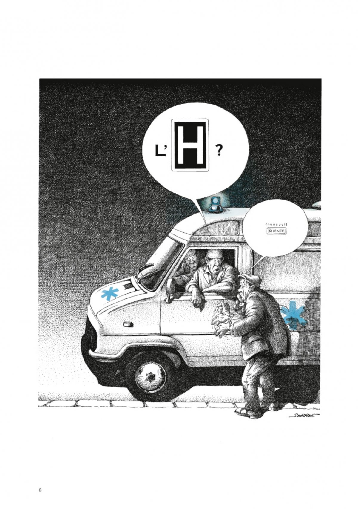 Évitez d’ouvrir ces intégrales si vous vous apprêtez à entamer une activité sportive ou à subir une opération... et si vous n’êtes pas réceptif à l’humour pince-sans-rire !Si l’on en croit cette compilation de dessins truculents de Serre, tout y a l’air si absurde que vous risqueriez de finir bien mal en point ! Mais en réalité, ce ne sont pas spécialement l’hôpital ni le sport qui sont absurdes aux yeux de Serre, c’est l’humanité en général ! Ses dessins, comme ceux de l’illustre Quino, ont voyagé partout dans le monde et dans les bibliothèques de toutes les familles de France. Leur humour noir les classe parmi ceux qui vous marquent pour la vie entière, tant ils sont à la fois réalistes et ubuesques !Les éditions Glénat, qui publient le grand Serre depuis les années 80, proposent ici deux opus thématiques dans un format et une pagination revisités, soulignant ainsi l’intemporalité de l’humour de son auteur.