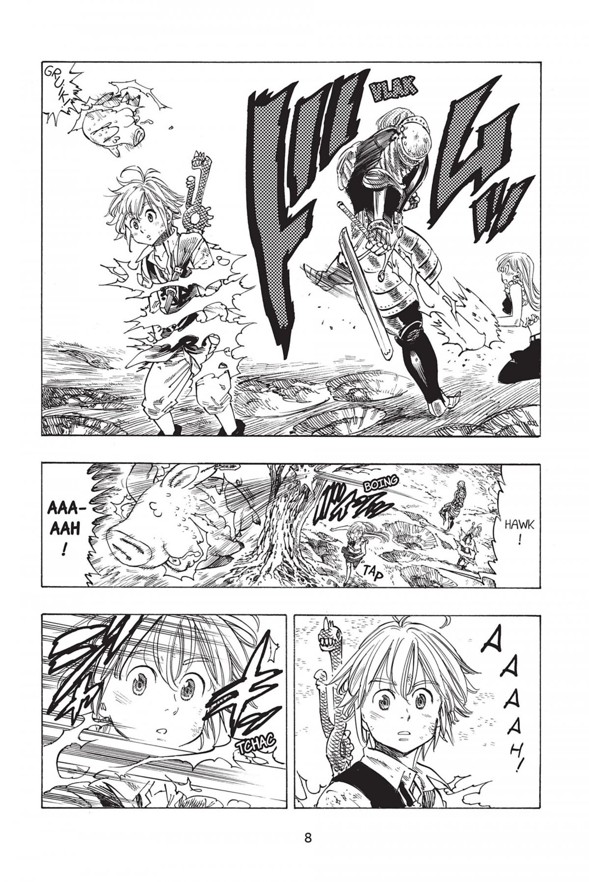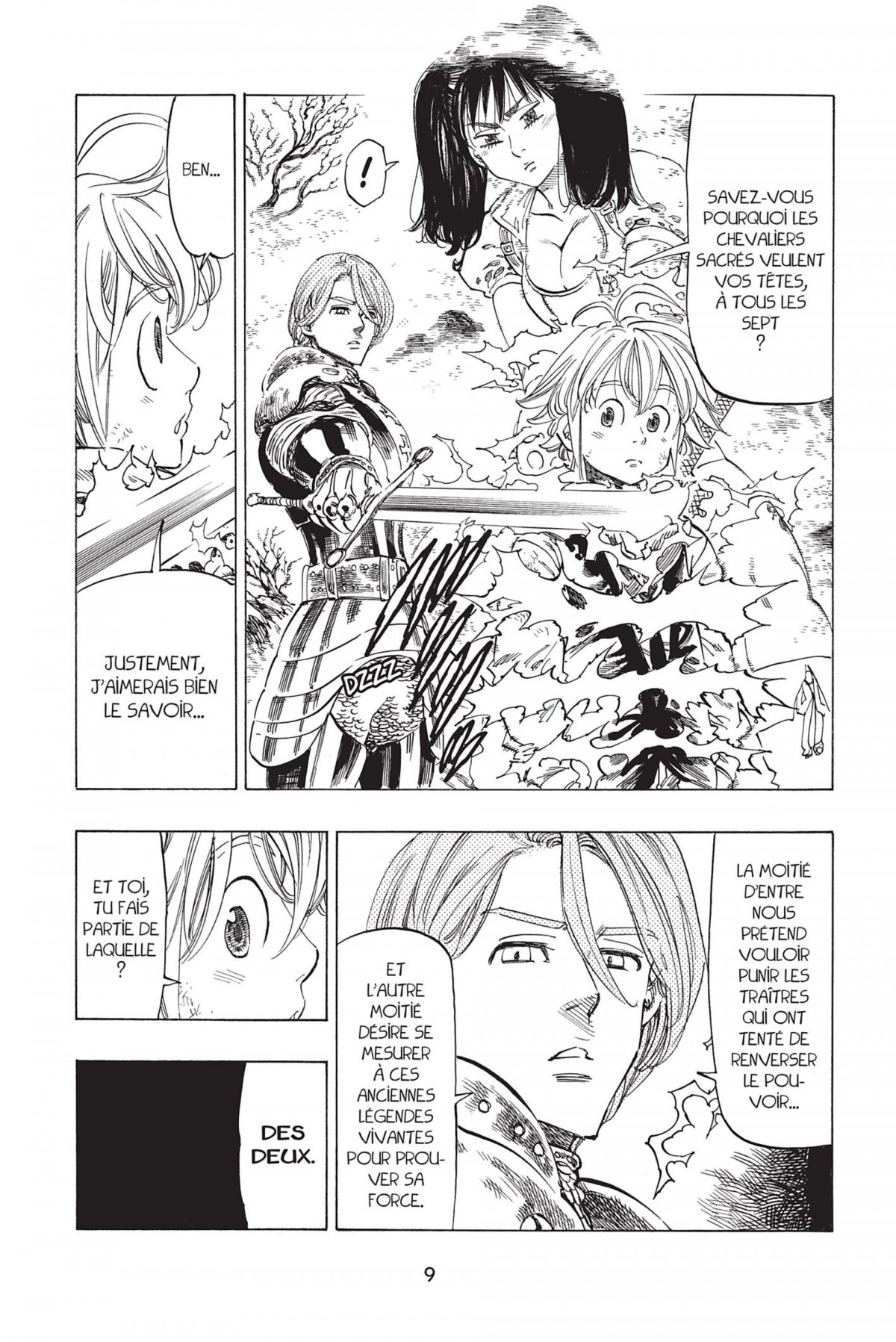 Alors que Meliodas et Elizabeth viennent de retrouver Diane, le péché de l’envie, ils se font attaquer par un Chevalier Sacré manipulant la foudre. Il se nomme Gilthunder et veut venger son père prétendument assassiné par les Seven Deadly Sins il y a dix ans. Très sûr de ses capacités, il provoque Meliodas en duel ! Ce combat leur permet d’apprendre que Ban, le péché de l’avarice, est emprisonné dans une ville voisine... Meliodas, Diane, Elizabeth et Hawk se préparent alors à aller le délivrer mais c’était sans compter les puissants weird fangs, qui vont leur mettre des bâtons dans les roues avec leurs terribles pouvoirs magiques...