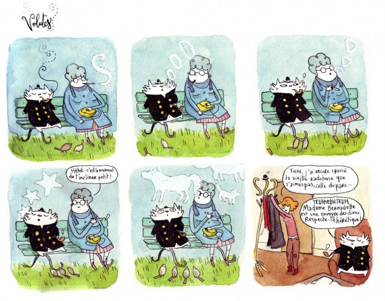Au cours de saynètes de la vie quotidienne, cette bande dessinée présente une galerie de personnages hauts en couleur : une grand-mère acariâtre, des copines supportrices de l’équipe de foot de Papouasie, des enfants de 4 ans surexcités et Dieu lui-même qui s’avère être... un poney