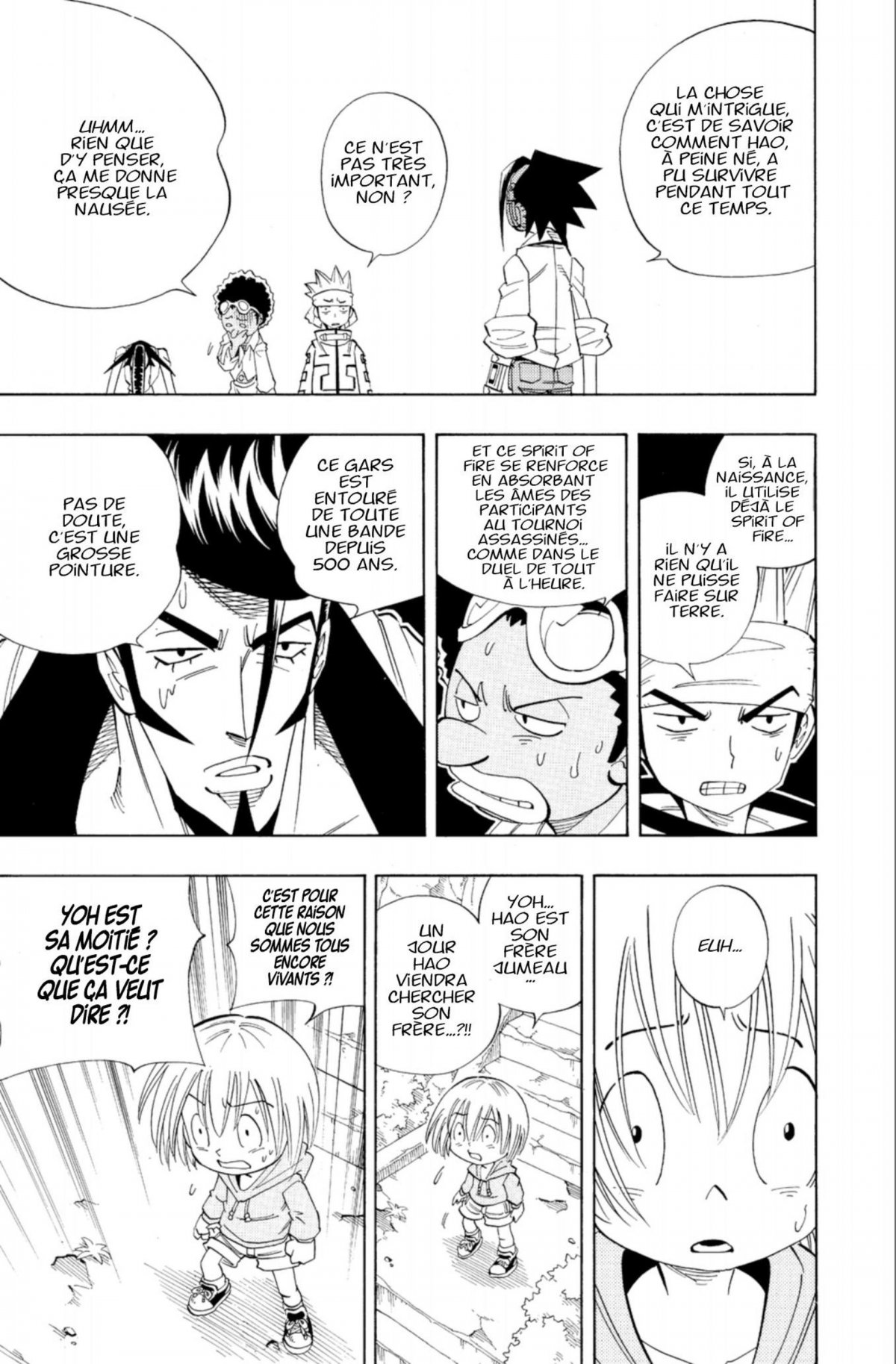 Yoh se met en colère contre les agissements cruels de Hao. Rien d’étonnant, Hao est en fait le frère jumeau de Yoh ! Une vérité qui va bouleverser nos amis... Nos amis vont également faire la connaissance de Mikihisa, le père de Yoh. Serait-ce finalement une affaire de famille ?