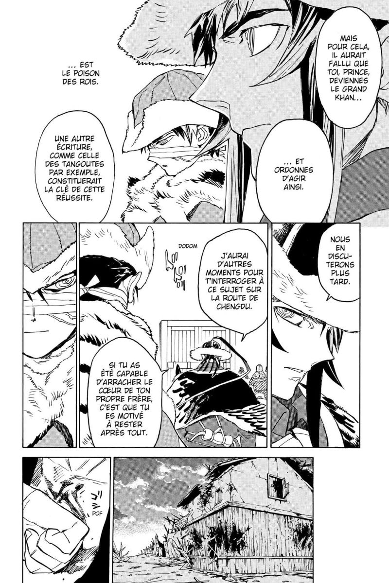 Toujours animé par la volonté de protéger les caractères tangoutes, Yurul adopte une approche radicalement différente pour atteindre son but. De son côté, le prince Torui, informé de la nouvelle situation de Shut Hell, décide de lancer quelqu’un de très particulier à sa poursuite.