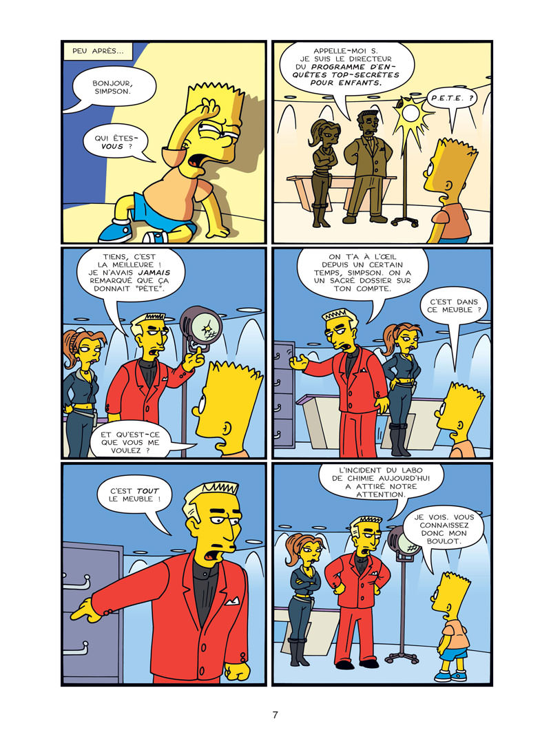Dans cet album, trois nouvelles histoires inédites avec les titres : - Bart Simpson, Agent Secret, mec !