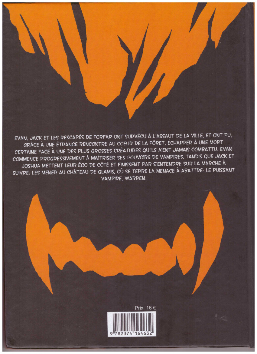 Evan, Jack et les rescapés de Forfar ont survécu à l’assaut de la ville, et ont pu, grâce à une étrange rencontre au coeur de la forêt, échapper à une mort certaine face à une des plus grosses créatures qu’ils n’aient jamais combattu. Evan commence progressivement à maîtriser ses pouvoirs de vampires, tandis que Jack et Joshua mettent leur égo de côté et finissent par s’entendre sur la marche à suivre : les mener au château de Glamis, où se terre la menace à abattre : le puissant vampire, Warren.