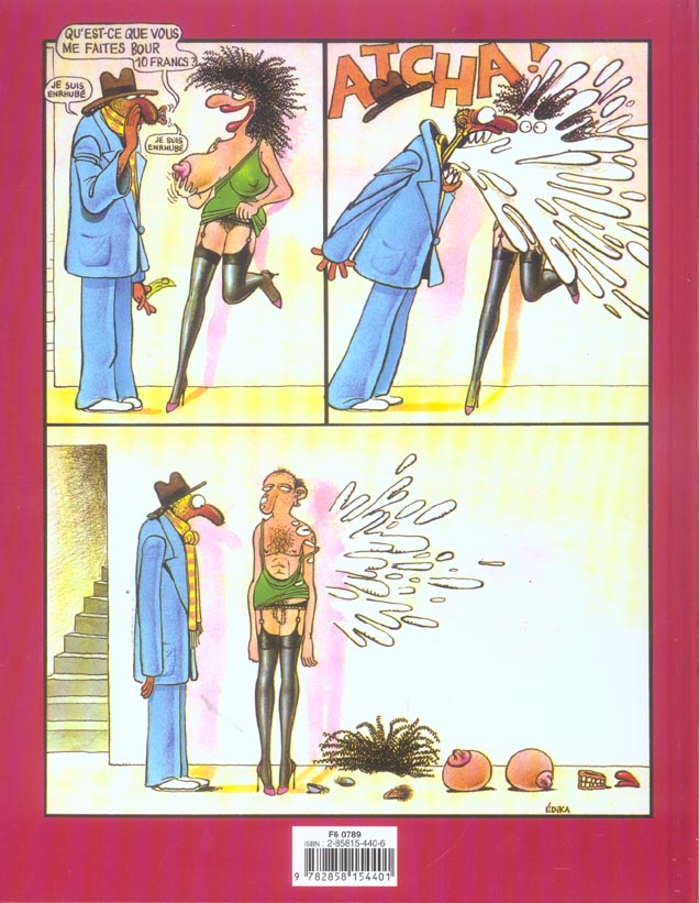 Pour exprimer ses fantasmes, EDIKA ne recule devant rien, ni le fantastique, ni la scatologie, ni la publicité télévisée. Allègrement, il matraque à grands coups de mamelles hyper-développées tout ce qui se trouve à sa portée. Et c’est particulièrement réjouissant. Humour fou à tous les étages.