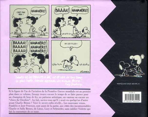 Les talents de Snoopy sont innombrables : aviateur émérite pendant la Premiere Guerre mondiale, il peut aussi passer pour un champion de bras de fer, un patineur artistique, un vautour ou encore un chien de Cheshire. On le retrouve dans tous ces rôles aux côtés de Charlie et Sally Brown, de Linus, Lucy et Schroeder, sans oublier ni Violette - qui fait la couverture de cet album - ni les nouveaux venus, Franklin et José Peterson. Mais, au fait, saviez-vous que Snoopy avait eu quelqu’un dans sa vie avant Charlie Brown ? Voila le secret enfin révélé !