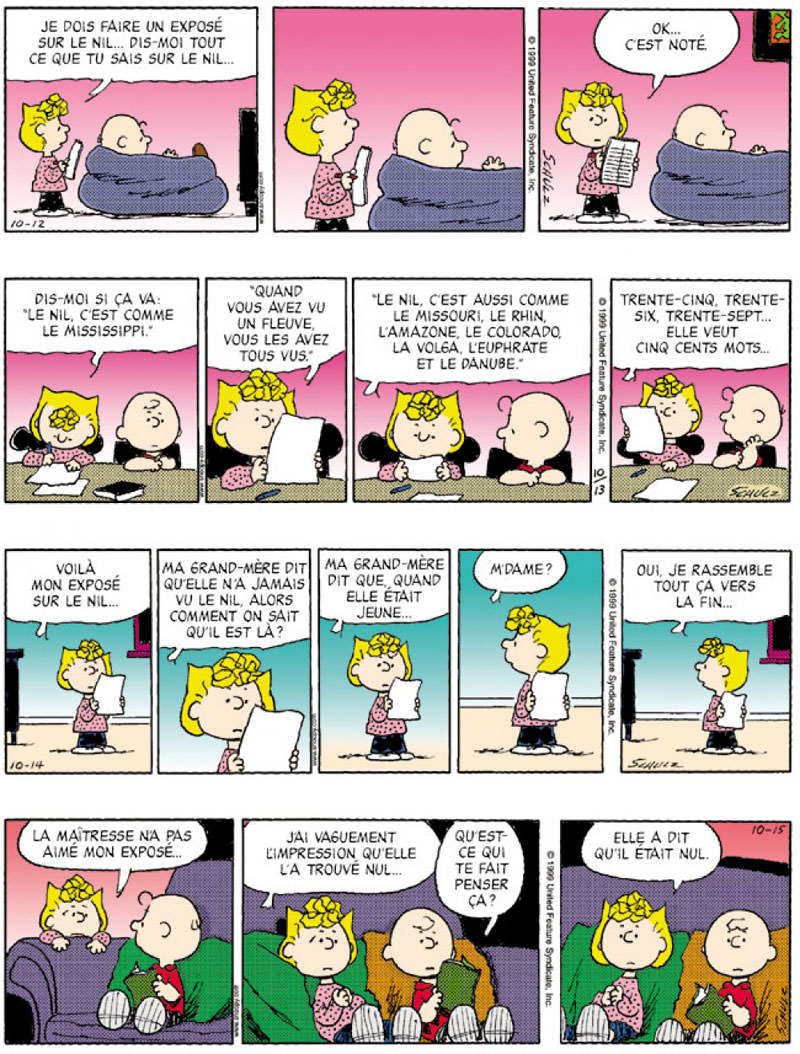 Charles Schulz nous a quittés le 13 février 2000 . Ses derniers gags, comme les précédents, ont été publiés dans 2600 journaux et lus par 355 millions d’inconditionnels. Voici les ultimes planches de l’année 99 précédées des toutes premieres, dessinées cinquante ans plus tôt, afin que la boucle soit bouclée