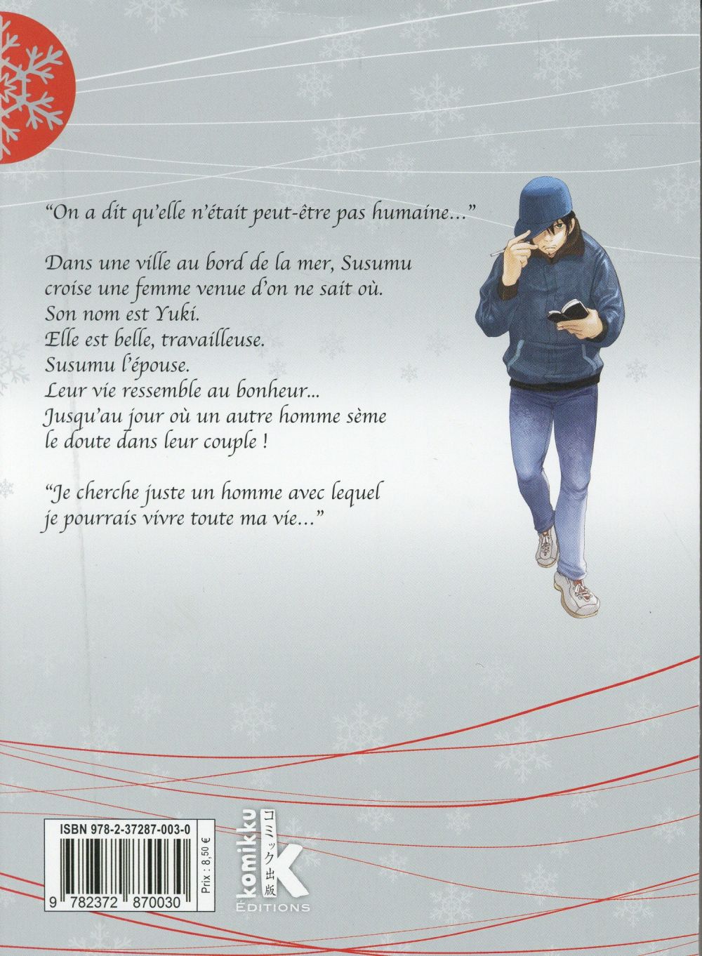 Tout va très vite : par hasard, Susumu rencontre Yuki, tombe amoureux et se marie.Ils habitent ensemble et Yuki est vite intégrée dans ce village où tous les habitants se connaissent...Enfin, c’est ce que tout le monde croit, mais de toute évidence les rumeurs vont bon train et la vérité semble bien plus complexe !Apparue aussi fugacement que quelques flocons de neige à l’automne, Yuki est une femme mystérieuse qui malgré tous ses efforts fait souffrir les hommes qu’elle rencontre.Elle est pourtant attentionnée, intelligente et amoureuse, mais le destin finit toujours par se répéter... Un amour, une disparition...Yuki arrivera-t-elle à vivre une vie normale ? L’amour ne serait qu’une illusion ?
