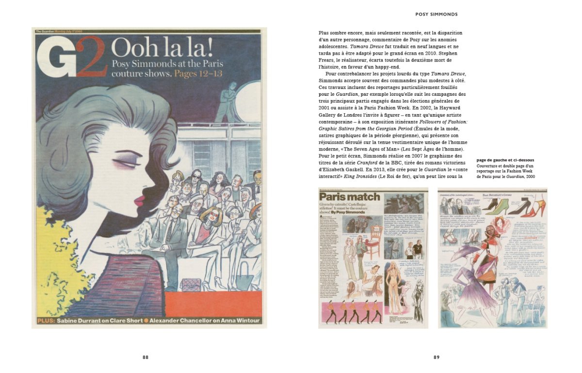 Célèbre au Royaume-Uni depuis les années 70 pour son travail de presse et sa longue collaboration avec le Guardian, quotidien de la classe moyenne progressiste britannique, Posy Simmonds n’a été révélée en France qu’à l’aube du XXIe siècle, avec la publication de son premier roman graphique, Gemma Bovery. Depuis, Tamara Drewe, Literary Life et Cassandra Darke ont paru ici, ainsi qu’une poignée d’albums jeunesse dont Fred, l’histoire d’un chat ordinaire le jour, rock star la nuit, ou le délicieux Chat du boulanger. Le public français ignore encore les deux tiers de l’oeuvre de cette artiste prolifique. Objet d’innombrables articles, de critiques et d’exégèses enthousiastes, le travail graphique de Posy n’avait encore jamais été rassemblé dans une monographie. C’est fait grâce à Paul Gravett, journaliste et critique anglais de bande dessinée, commissaire de nombreuses expositions - dont celle que le PULP Festival 2019 consacre en avril à Posy Simmonds, la première en France de cette importance. Proche de l’auteure, cet érudit du 9e Art réunit dans un ouvrage riche et concis un portrait intime et une étude en profondeur des méthodes de travail très spéciales de celle que la presse de son pays surnomme "la mère du roman graphique anglais" . On y découvre une Posy très drôle, d’une totale liberté de pensée, à la main sûre et à l’oeil acéré, redoutable caricaturiste de son temps, toujours lucide, jamais cruelle, fascinée par les rapports humains et les failles qui divisent sa société, riches contre pauvres, enfants contre parents, villes contre campagne, observatrice inlassable des grandeurs et vicissitudes de notre présent. Une artiste considérable qui s’inscrit dans la lignée des grands dessinateurs humoristes anglo-saxons tels William Hogarth, Osbert Lancaster, Ronald Searle ou Raymond Briggs. Cette promenade en 120 images dans la partie inexplorée de son oeuvre (incluant de très rares oeuvres de jeunesse) entraînera le flâneur français à la découverte de merveilles inconnues comme Les Trois Silencieuses de St Botolph, True Love ou Le Journal de Mrs Weber, qui font se tordre de rire ses contemporains depuis de longues décennies.