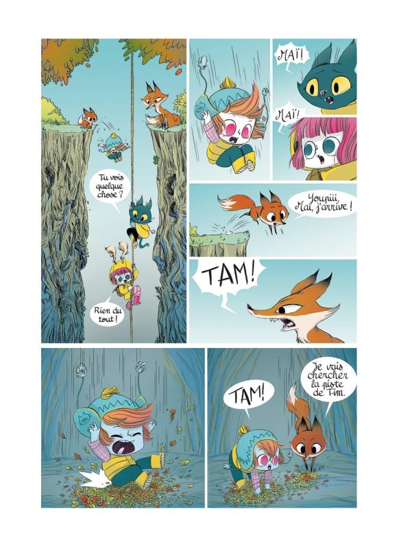 Maya, Mia et Maï sont de retour ! Au fil des pages, MissPaty continue de tisser son univers bucolique et nous livre un second tome plein de mystère qui confirme son talent. Par ici l’aventure ! Alors que l’orage gronde, les soeurs Moustaches profitent de la nuit pour jouer à se faire peur. C’est rigolo !. Jusqu’à ce que Papy évoque l’existence d’un fantôme chapardeur qui rôde près de la vieille souche, et effraye jusqu’aux plus courageux des habitants de la forêt. Un vrai fantôme ? Voilà un défi à la mesure de notre trio, aussi curieux que téméraire ! De clairières en sous-bois, de crevasses en tunnels, les trois soeurs vont percer le mystère de la vieille souche et lui faire livrer tous ses secrets. (Et gare à l’ermite fou fou fou !) Trois soeurs pétillantes et attendrissantes portent ce récit en forme de jeu de piste. Un vivifiant méli-mélo !