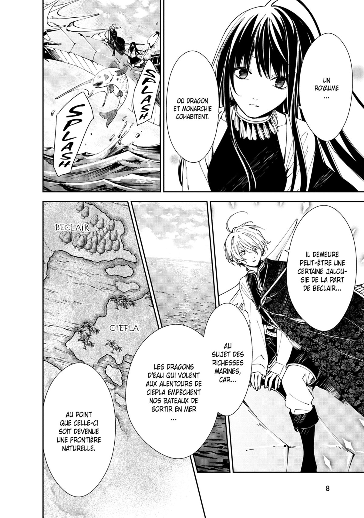 Après avoir libéré Gedeon de sa chaîne magique, Sena apprend ce que cachaient réellement les provocations de l’empereur Isaac. Forte de cette nouvelle expérience sur les relations entre dragons et humains, elle s’apprête à regagner le royaume de Beclair en compagnie de Keith et de ses gardes... Quand soudain, une pluie battante se met à tomber, annonçant l’arrivée d’une nouvelle créature. C’est Shirïn, la Reine-dragonne de l’Eau, qui implore Sena... de l’éliminer ! Touchée de plein fouet par le chagrin de Shirïn et intriguée par son étrange requête, Sena décide de l’accompagner à Ciepla, un royaume entouré d’une mer opulente.