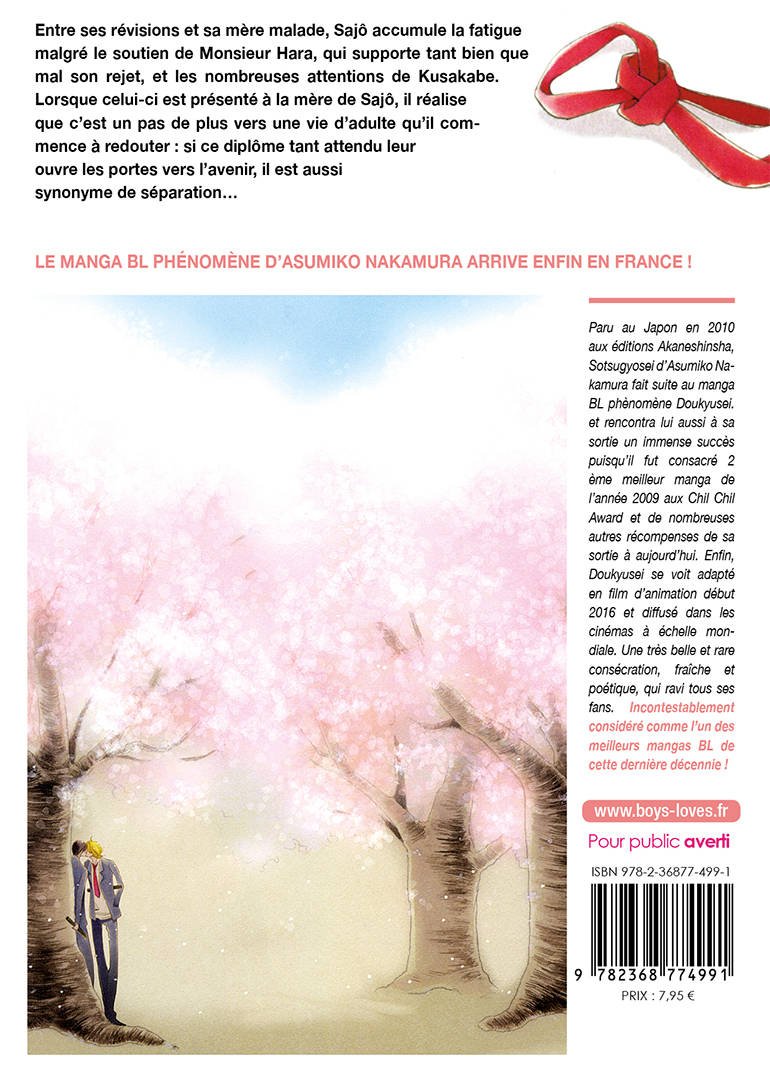 Sotsugyousei 2 est le volume 2 de la série Sotsugyousei par Asumiko Nakamura, paru en 2016. Selon nos informations, il n'en existe qu'une seule édition, publiée par Boy’s Love IDP.