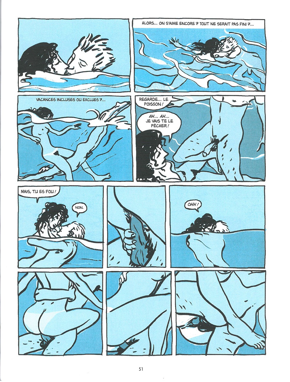 Les histoires de ce recueil ont été créés pour le magazine italien Blue, dans les années 90. Elles relatent des faits réels vécus par L. Scarpa ou ses amies. Emportés par le désir, des couples font l’amour dans des lieux publics, sur la plage, au cinéma, dans les églises. Ces histoires, riches en sentiments et en humanité, consituent l’une des premières incursions de la BD d’auteur dans l’érotisme.