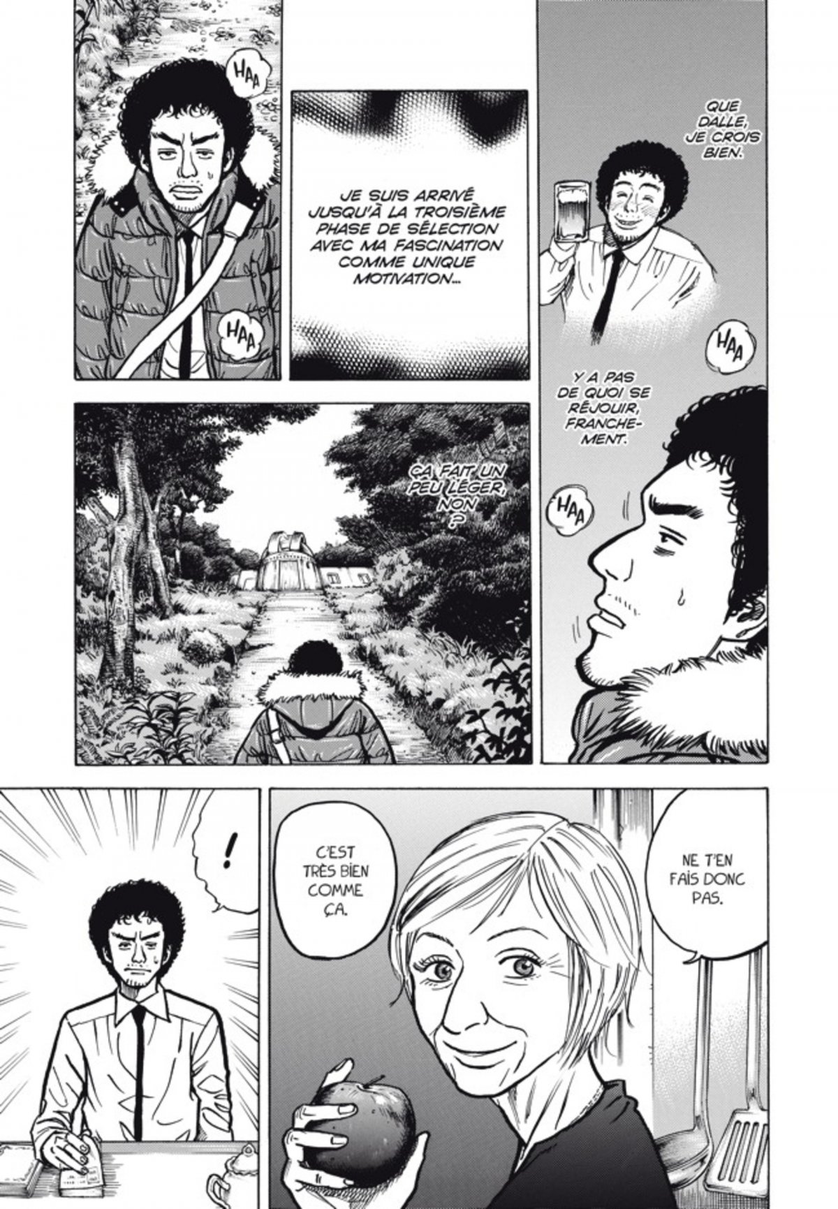 Hibito a bien de la chance, il sera le premier des deux frères à fouler le sol lunaire. Mais Mutta est résolument décidé à lui emboîter le pas ! Pour atteindre son but, il doit d’abord passer avec succès la troisième phase de sélection de la Jaxa. Les candidats sont divisés en trois équipes et s’apprêtent à séjourner deux semaines dans des caissons d’isolement totalement coupés du monde extérieur. Les esprits vont être mis à rude épreuve !