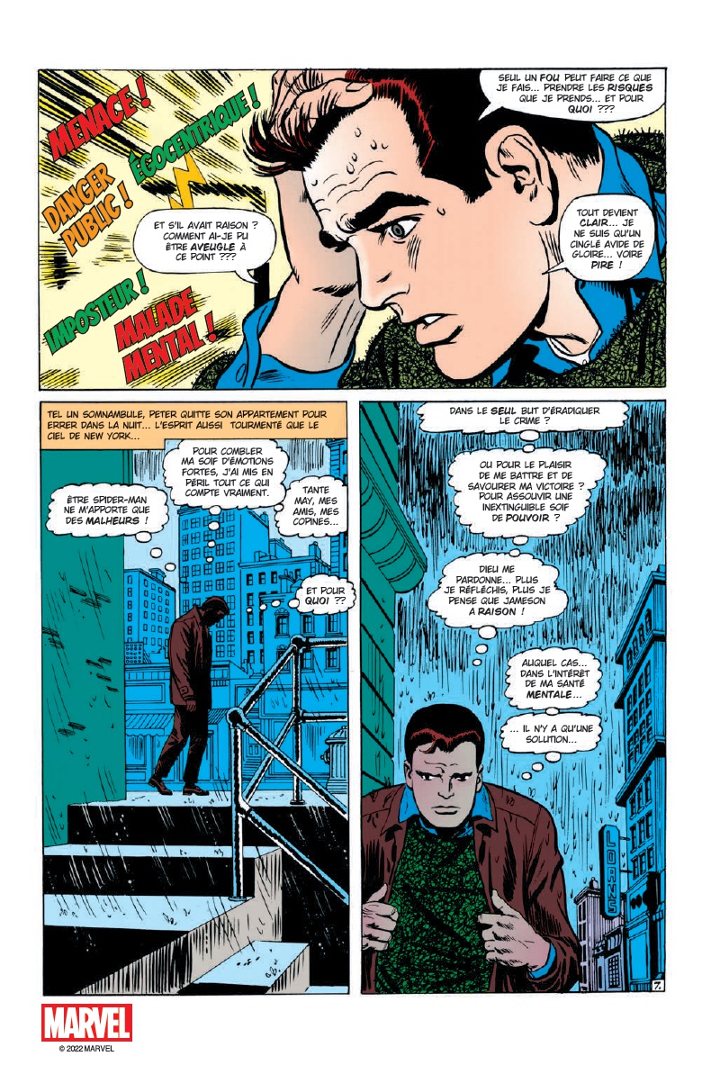 Difficile d’être Spider-Man... trop difficile ? Cela ne fait pas longtemps que Peter Parker a endossé le costume de super-héros, mais la pression est déjà trop forte et le jeune héros ne parvient pas à concilier sa vie de tous les jours avec ses activités de justicier. Il décide donc... de renoncer à être Spider-Man ! Mais est-ce possible quand le Caïd et le Docteur Octopus refont surface