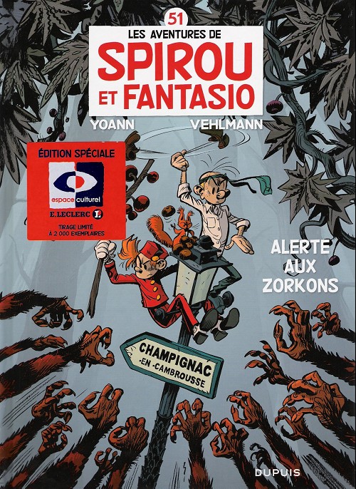 Quelques jours plus tard, de retour d’un festival de bande dessinée, Spirou et Fantasio savourent l’idée de partir pour des vacances bien méritées. Spip s’imagine déjà face à un délicieux lait de noisette bio. Un coup de fil angoissant du Comte leur fait rebrousser chemin, direction : Champignac-en-Cambrousse