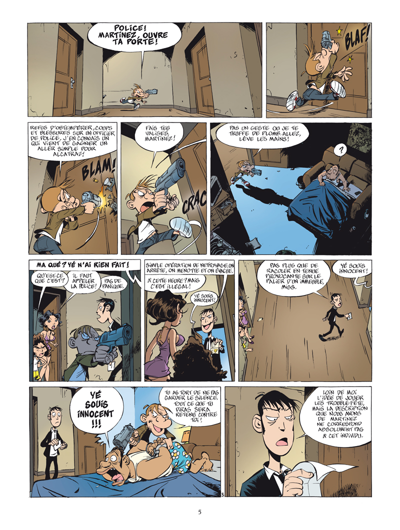 Deux flics gentiment allumés qui flinguent tout sur leur passage. Même la morosité !Spoon ressemble à Dirty Harry. Sauf qu’il est petit, stupide, et dort avec un Goofy en peluche. White, lui, a tout d’un agent du FBI. Si ce n’est qu’il est bête comme un gyrophare et aussi inefficace qu’une paire de menottes sur un manchot. Reste donc le costard noir et la chemise blanche. C’est mince. Autant dire qu’avec une paire de flics aussi barrés, aucun new-yorkais n’est à l’abri d’une balle perdue... Car leur seul point commun est que les deux hommes se détestent... et ne reculent devant rien pour s’éliminer l’un l’autre et séduire la femme dont ils sont tous deux amoureux : Courtney Balconi, la présentatrice vedette de BNN, dont les décolletés plongeants en ont déjà noyé plus d’un... Pour ce nouvel opus, notre duo infernal rejoint la cellule antiterroriste de New York pour déjouer les plans diaboliques d’un terroriste maniaque. Parodiant entre autres la fameuse série « 24 heures chronos », ce nouvel épisode va encore une fois dynamiter la bande dessinée humoristique !