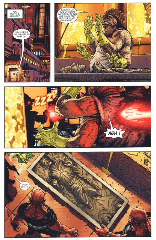À la fin de l’Empire contre-attaque, Boba Fett avait figé Han Solo dans la carbonite, afin de le livrer à Jabba The Hutt. Mais voilà que quelqu’un a volé le corps statufié du héros ! C’est le début d’une course-poursuite entre les rebelles, Boba, le Docteur Aphra et tous les chasseurs de primes de la galaxie