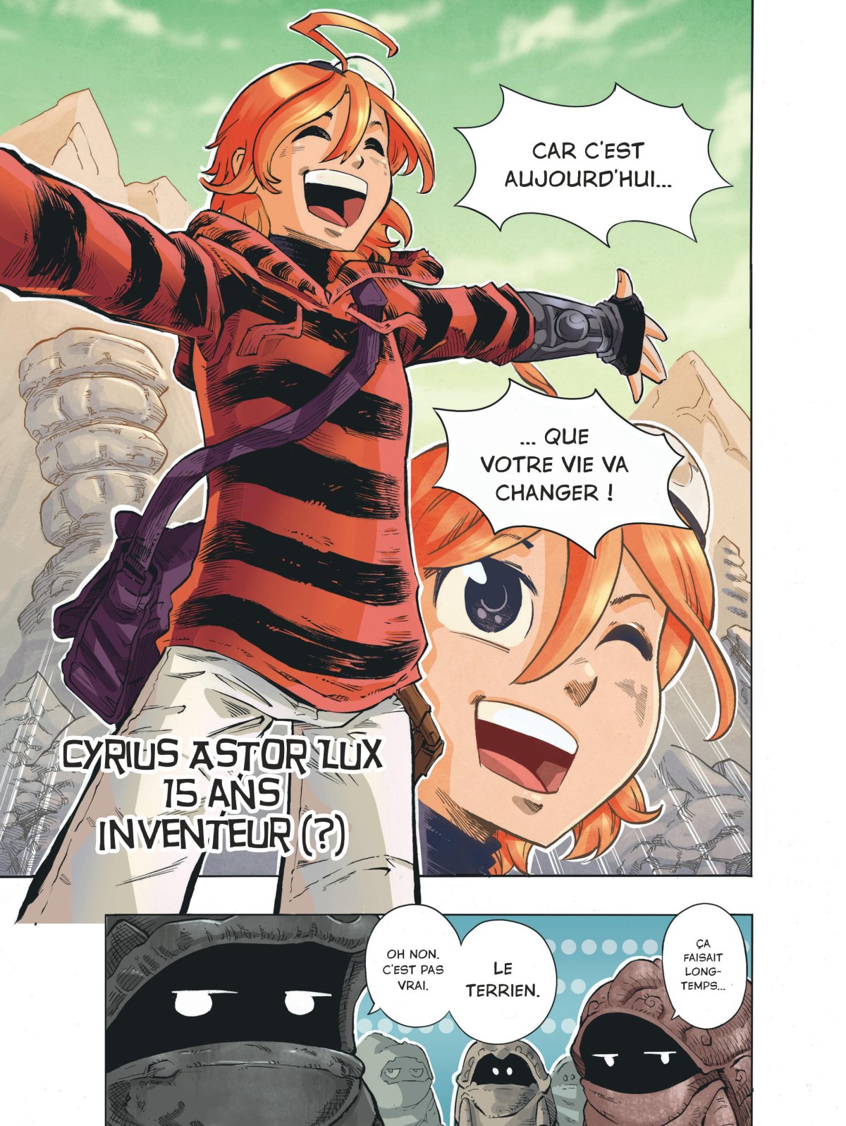 Cyrius est un jeune inventeur coincé sur une planète perdue au fin fond de la galaxie. Alors qu’il enchaîne les tentatives ratées d’évasion, il provoque le crash d’un vaisseau spatial et tombe sur une alien naufragée, Chantilly. Celle-ci est traquée par des pirates de l’espace, qui prennent aussi Cyrius pour cible. En effet, il est le dernier Terrien de l’univers, sa tête vaut donc très cher. C’est le début d’une quête dans les tréfonds de la planète, puis à travers la galaxie, pour retrouver des traces de l’humanité disparue.