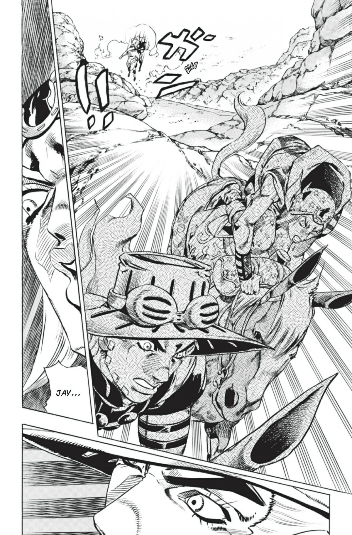 Jayro, Johnny et Mountain Tim tombent dans le piège tendu par la famille Boomboom, dont l’un des membres a le pouvoir de manipuler le fer ! Le fer contenu dans le sang de chacun d’eux s’attire alors mutuellement, les clouant tous les trois l’un à l’autre et provoquant le déchirement de leur chair ! Déjà dans une situation plus que critique, un phénomène anormal survient au corps de Johnny !