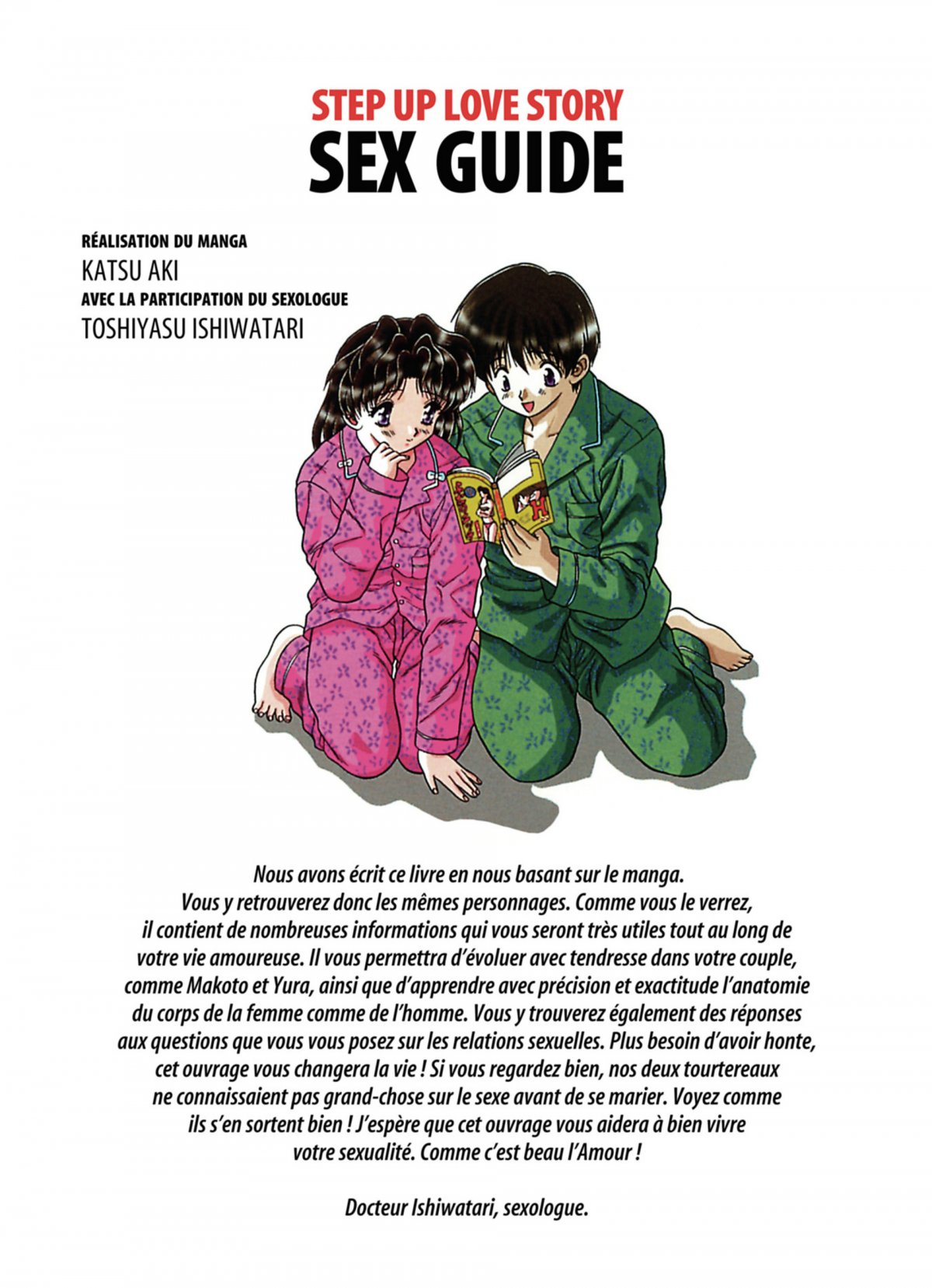 Véritable condensé des différents problèmes relationnels qui peuvent intervenir physiquement dans un couple, et des solutions s’y rapportant, le Step Up Love Story Sex Guide est un ouvrage qui regorge d’informations pratiques. Reprenant le déroulement de la relation entre Yura et Makoto, vous y découvrirez les émois de la première expérience sexuelle, l’importance des préliminaires avant l’action, la magie des contacts sensuels, profiterez de conseils pour éviter la routine ou trouver les solutions à vos problèmes, etc. Les très nombreux chapitres de l’ouvrage sont tous commentés par le Dr Toshiyasu Ishiwatari, sexologue, qui prodigue ici de façon ludique - et sans tabous - de précieux conseils. Une "bible" du sexe qui s’adresse aussi bien aux filles qu’aux garçons !