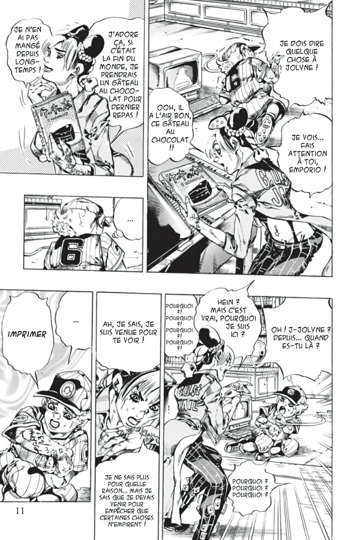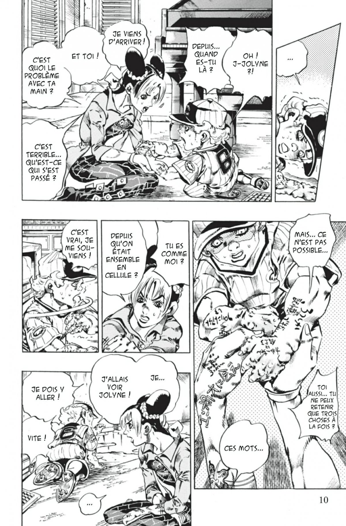 Sous l’emprise du Stand Jailhouse Rock de Miu Miu, une gardienne du pénitencier de Green Dolphin Street, la mémoire de Jolyne est altérée : elle ne peut retenir que trois souvenirs à la fois ! Mais Miu Miu ne s’arrête pas là puisqu’elle abat bientôt Emporio ! Jolyne parviendra-t-elle enfin à s’échapper de cet enfer carcéral ?
