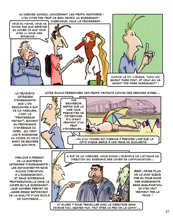 Bien qu’humoristique, cette BD de Zeil est surtout un guide concret et factuel du système des écoles supérieures de commerce françaises, alias les " sup de co "
