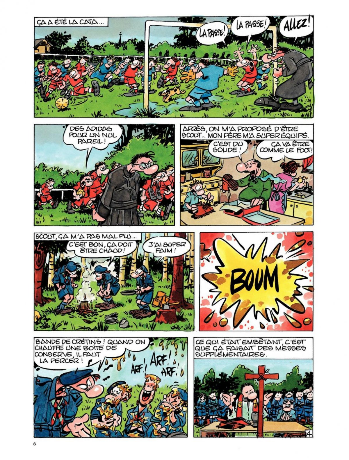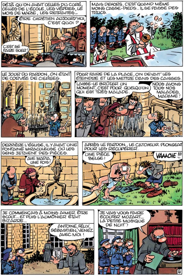 Un jour, René Pétillon et Florence Cestac se racontent leur enfance catho et trouvent ça rigolo. D’où cette chronique d’une enfance campagnarde ponctuée de jeux innocents (pétards dans la bouse de vache) et de musiques modernes (Bambino dans le transistor), entre les menaces vertueuses de frère Léon ("Dieu voit tout ! Dieu vous juge !") et la Panhard toute neuve - un modèle qui monte à cent dix comme un rien