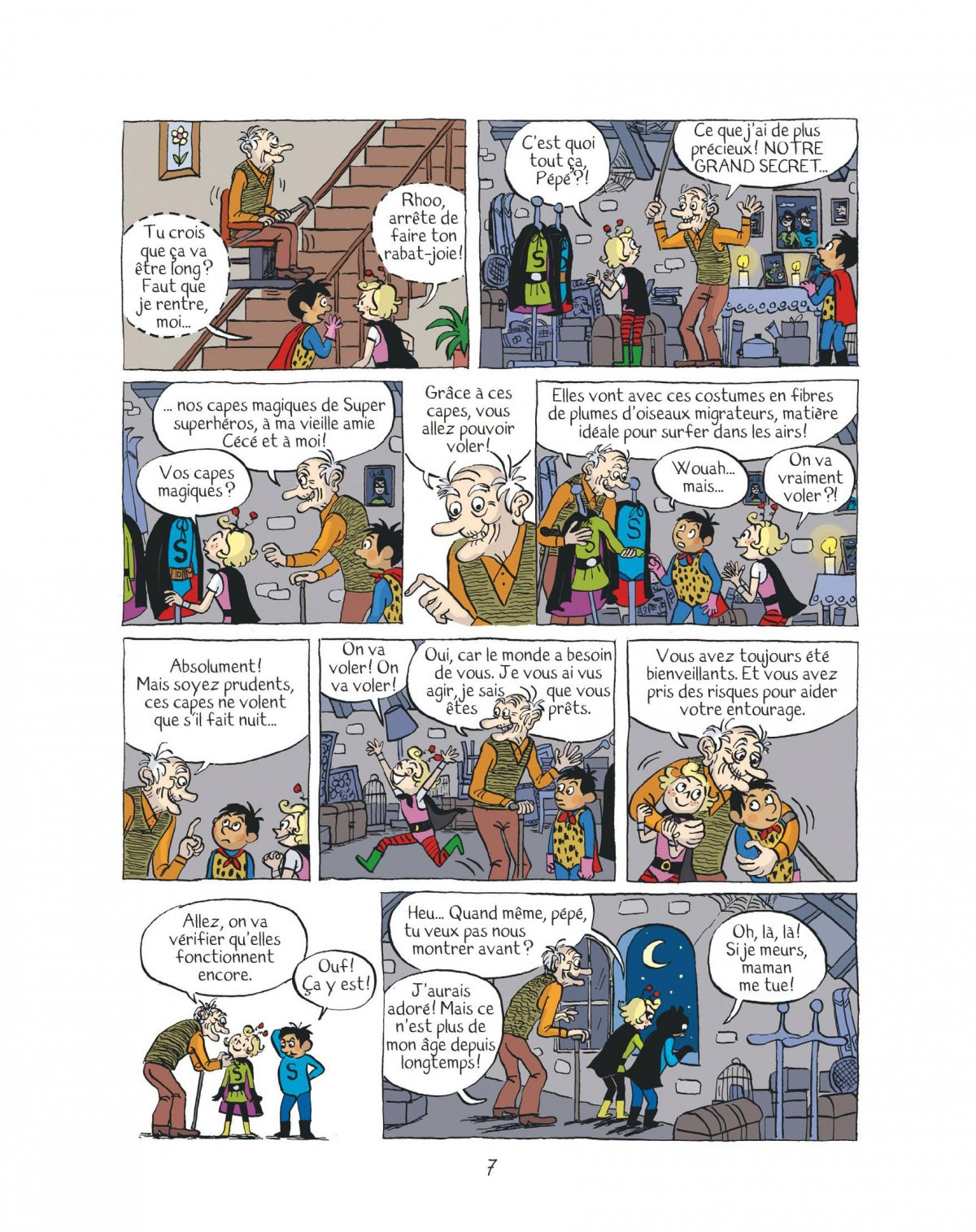 Entre l’école, les parents et les devoirs, Aglaé et Juju trouvent toujours le temps d’aider les autres. Et Pépé Dédé, ancien Super, leur a fait un cadeau extraordinaire... deux capes magiques qui permettent de voler et traverser le monde entier en une nuit ! Grâce à leurs nouveaux costumes, les missions s’enchaînent au plus grand plaisir des deux enfants ! Que ce soit pour organiser un Nouvel An chinois, rassurer une championne olympique, aider deux amoureux ou protéger un animal, les Super Super sont toujours prêts pour l’action. Et ce, même quand personne ne leur demande de l’aide ! Hum... Un quatrième tome toujours aussi drôle, qui montre encore une fois qu’il est agréable de pouvoir venir en aide aux autres, à n’importe quel âge !