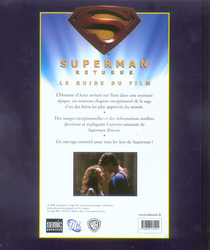 L’Homme d’Acier revient sur Terre dans une aventure épique, un nouveau chapitre exceptionnel de la saga d’un des héros les plus appréciés du monde. Des images exceptionnelles et des informations inédites décrivent et expliquent l’univers saisissant de Superman Returns.