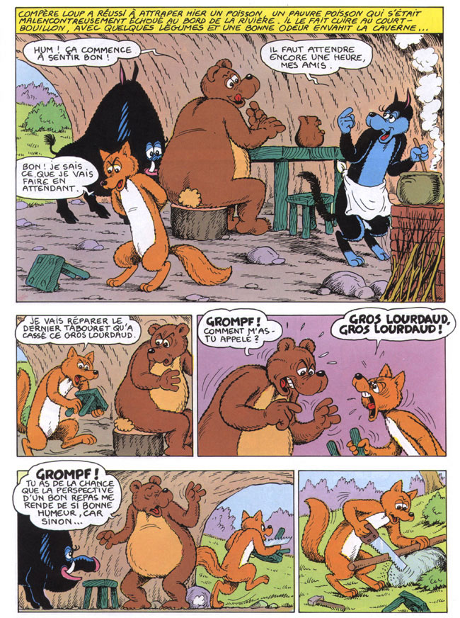 Plutôt que de s’obstiner a entrer dans la chaumiere, Loup préconise de capturer Sylvain et de s’emparer des victuailles qu’il ramene de la ville. Mais le paquet que rapporte Sylvain contient une surprise a laquelle on ne s’attendait pas. Cette surprise est un nouvel animal qui, aussitôt libéré, occasionne bien des ennuis aux auteurs du complot.