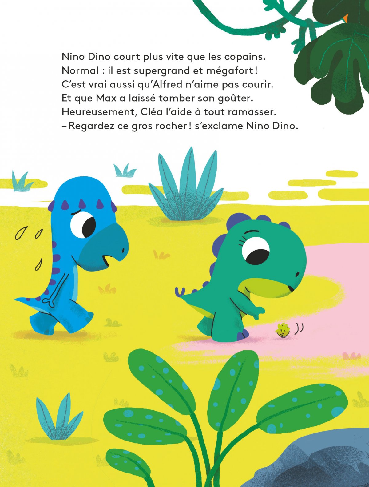 Aujourd’hui, Nino Dino a trouvé un super-endroit pour jouer. Donc c’est lui qui commande. Mais son amie Cléa n’est pas d’accord ! Quant à Max, il refuse de partager son goûter. Alfred, lui, arrête de jouer si tout le monde crie