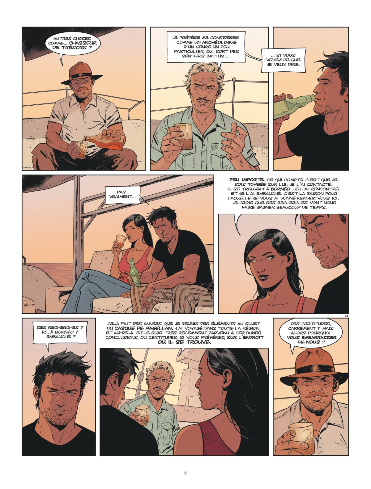 Bornéo, océan Pacifique. Tango et Mario, désormais flanqués de leur ami philippin Crisanto et de l’envoûtante Lani, courent toujours après le casque de Magellan. Un baroudeur anglais leur apporte les pièces manquantes du puzzle. Escroc ou vrai chasseur de trésors ? C’est au moment de toucher au but que les choses se compliquent sérieusement...