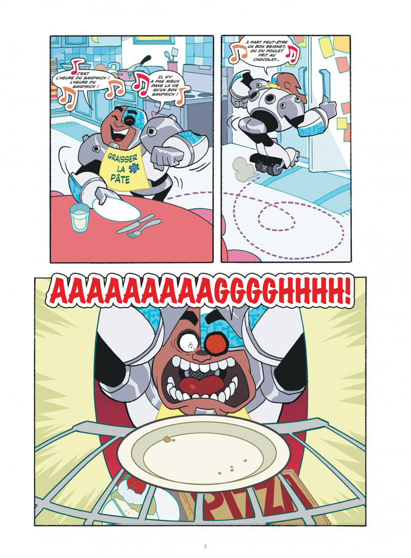 Rejoignez la joyeuse bande de Robin, Starfire, Beast Boy, Raven et Cyborg ! Quand ils ne combattent pas les super-vilains, ils tentent d’organiser la fête de la boulette ou de partir en quête du sandwich parfait en contrant les attaques monstrueuses de pizzas géantes. D’autres aventures savoureuses et pimentées au menu de Teen Titans Go ! Hummm, de la régalade et de la rigolade en barres !