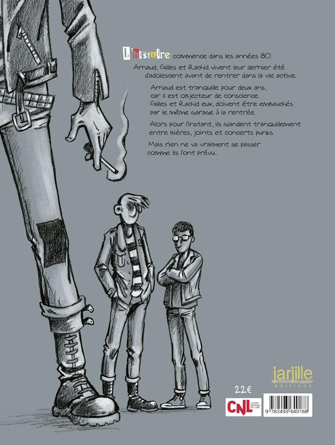 Nous sommes dans les années 80, Arnaud, Gilles et Rachid vivent leur dernier été d’adolescent avant de rentrer dans la vie active, comme disent les profs de leur lycée. L’histoire commence sur le quai d’une gare ou le petit groupe attend Nadia la soeur de Rachid. Elle vient de prendre un appartement sur Montpelier pour poursuivre ses études à la faculté. Ses parents, maghrébins d’origine, sont très fiers de la réussite de leur fille et ils invitent les jeunes à partager leur repas. Arnaud est tranquille pour deux ans car il est objecteur de conscience. Gilles et Rachid eux, doivent être embauchés par le même garage à la rentrée, alors pour l’instant ils glandent tranquillement entre bières, joints et concerts punk. Mais rien ne va vraiment se passer comme ils l’ont imaginé...