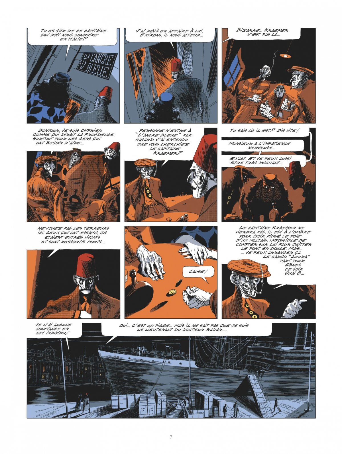Terreur en Italie ! Sur le point d’être menée à l’échafaud, Mariana, la maîtresse et complice du docteur Radar, s’est évadée. Bilan de l’opération : 3 morts. Pour le détective Ferdinand Straub, aucun doute : son ennemi juré a refait surface, et pas question qu’il lui échappe une fois de plus ! Il suit sa trace jusqu’à Rome, où un éminent scientifique a récemment été enlevé. Le tueur de savants aurait donc trouvé refuge dans l’Italie fasciste de Mussolini. Ce qui veut dire qu’en plus des sbires peu scrupuleux de son adversaire, Straub va devoir se frotter aux Chemises noires du Duce... La tâche risque d’être ardue.Après un premier tome remarqué, Noël Simsolo et Bézian nous replongent dans les aventures délicieusement feuilletonnantes de Docteur Radar ! Un récit enlevé au dessin virtuose qui rend autant hommage au cinéma expressionniste allemand qu’à Fantômas et aux romans de gare du début du XXe siècle.