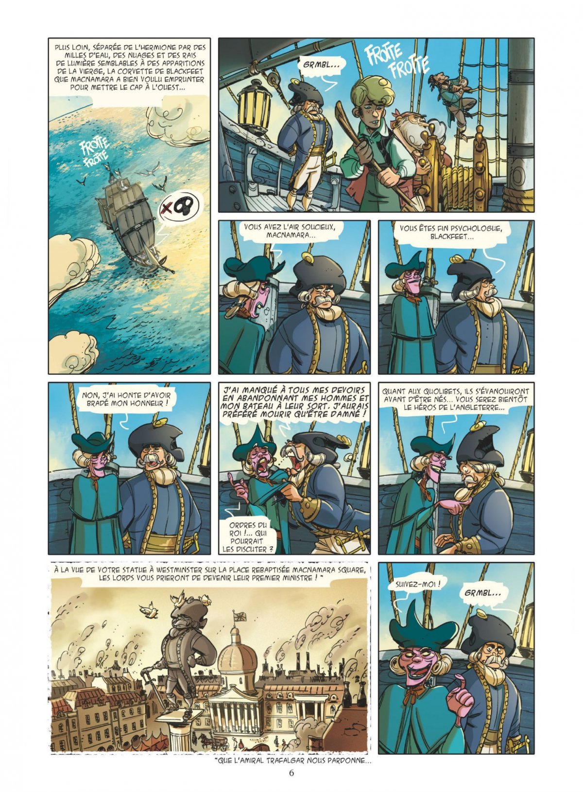 Alix et Germain sont parvenus à sauver leur frère Arsène et les voilà maintenant embarqués tous ensemble sur l’Hermione. Plus question de partir pour Rochefort dorénavant ! Toutes voiles dehors, le fier galion est lancé à pleine vitesse sur les traces de Macnamara et Blackfleet. Les deux couards anglais ont pris la fuite en pleine bataille et ont rejoint une nouvelle frégate. L’honneur bafoué mais la vie sauve, ils continuent de voguer vers l’île de Marie-Galante, sur la piste d’un trésor Inca autrefois abandonné par les conquistadors. Nul doute qu’Arsène et Alix, ces deux gentils avares, feront tout pour les rattraper et mettre en premier la main sur le pactole.
