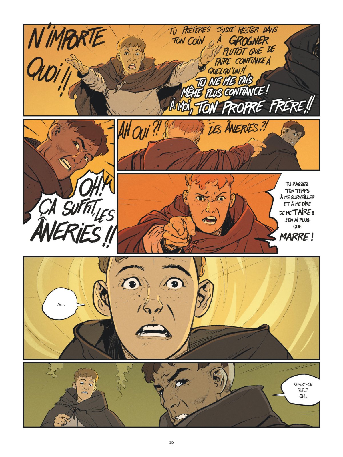Le château du père de Jehan n’est plus qu’à quelques lieues. Pour nos héros, c’est l’heure de se dire au revoir. Lancelin et Maïeul doivent rentrer chez eux, le coeur lourd. Et, depuis des semaines, Gaucher et ses compagnons n’attendaient que cela : que leurs ennemis se séparent afin de les battre les uns après les autres. Ainsi, alors que Lancelin et Maïeul viennent de quitter nos héros, Gaucher et ses hommes passent à l’attaque. Le félon entend bien se venger du Noirci qui lui a fait tant de mal.